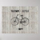 Customisez cette image de vélo antique et faites savoir à tout le monde que vous aimez votre vélo. Des planches blanches en bois vintages, gronces et affaissées composent l'arrière - plan. Fait un cadeau merveilleux pour le cycliste, passionné de fitness ou ami ou famille soucieux de l'environnement.