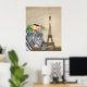 Vintage teinte sépia photo arrière - plan de la Tour Eiffel avec superposition d'une belle aquarelle portrait zèbre à couronne florale