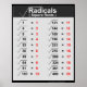 Des affiches radicales de racines carrés. Table ou graphique carré parfait.