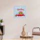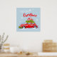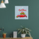 Posters for Merry Christmas, with a cute illustration of a festively decorated car with fir branches and boxes with presents on the roof.