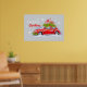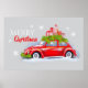 Affiches pour Joyeux Noël, avec une jolie illustration d'une voiture décorée festivement avec des branches de sapin et des boîtes avec des cadeaux sur le toit.
