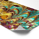 This is an abstract design in shades of turquoise and gold.