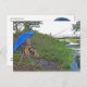 Postkarte aus der Serie "Blauer Schirm" Foto: A. Zahn für Benji-Zet Fotodesign. Hier zusammen mit Teddy beim Angeln am Kanal.