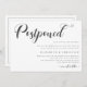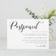 Black and white “postponed” announcement card for notifying your wedding guests of change of date or postponed wedding.