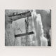 Have fun putting "Posts in the Snow" jigsaw puzzle together. An image of two wooden posts in the snow with thick fluffy clouds on a sunny day in the background. Done in black and white.