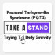 This postural orthostatic tachycardia syndrome (POTS) Take a Stand - Trying to Defy Gravity sticker design brings attention to those that are suffering from the ill effects of POTS and the urgency of finding a long-term cure to alleviate their suffering.