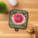 Bring a bit of beauty to your kitchen with an artsy pot holder containing a photo of a red and white poppy surrounded by a border made from the unique patterns found in tree bark. Pot holders make thoughtful gifts for your favourite host or hostess.
