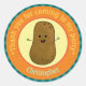 Cute brown happy potato with a big happy smile. He is placed inside a pale yellow circle on top of a dark orange background. Two templates are placed around the potato one to add your message at the top and one to add your name at the bottom.