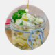 Potato salad in a jar on wooden ceramic ornament
