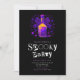 At the top of the invitation, a magical purple potion bottle takes centre stage. Filled with vibrant purple liquid and tied with a matching purple bow, this potion bottle adds a whimsical yet mystical element to the design. The bottle is surrounded by twinkling purple stars, evoking a sense of enchantment and magic that sets the tone for an exciting and fun Halloween celebration.