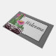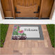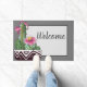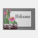 Modern design features watercolor potted cacti trio with pink blossoms and "Welcome" centred text on grey bordered background