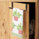 Lovely tea towel with potted greenery plants trimmed in stripes.