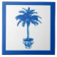 Digital rendition of a potted sago palm in a decorative planter with a solid border - Deep cobalt blue with a white background