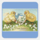 Mignons poussins rétro avec un oeuf et des fleurs, avec le message "Une Joyeuse Pâques", sont représentés sur cet autocollant carré. Utilisez-le pour ce courrier de Pâques spécial, le scrapbooking, la décoration et plus encore !