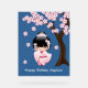Illustration vectorielle d'une mignonne fille orientale en robe kimono rose/blanc clair avec un sous-vêtement rouge foncé. Les cheveux noirs de la fille sont décorés de fleurs et de épingles à cheveux de style geisha. Cette oeuvre a été inspirée par les poupées kokeshi traditionnelles du Japon et influencée par le style art Chibi Kawaii japonais. Le cerisier Sakura en fleurs fait un simple arrière - plan.