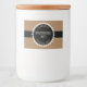 Ces autocollants de étiquette en conserve comportent du texte blanc pour votre nom, contenu et date sur un arrière - plan en cercle noir entouré d'une bordure en dentelle blanche sur un arrière - plan bronzé.
