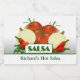 Illustration graphique de l'artiste-designer Charmaine Paukson de tomates, oignons, poivrons chauds et cilantro sur un étiquette en conserve. Le étiquette a un modèle texte pour votre personnalisation.