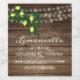 Impressionnez vos invités avec une délicieuse réception de mariage buvable...Limoncello. Cet exemple de étiquette de bouteille montre l'illustration vintage d'un citron sur un arrière - plan à l'allure de grange en bois et une série de lumières. Personnalisez le texte avec les noms des mariés et des mariés et l'année du mariage. Customisez toutes les polices et le texte. Pour voir d'autres produits mariages ou de douche nuptiale, visitez le site "The Hungarican Princess - A Boutique" @zazzle.com/hungaricanprincess. Félicitations. Ajoutez un panneau de table correspondant, regardez dans notre "Mariage Limoncello Department Category"