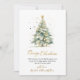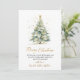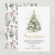 Élégant Moderne Botanique Foliage Calligraphie Script Arbre de Noël Non Photo Cartes de Noël. Ce Carte de fin de année de Noël simple et festif est doté d'un arbre de Noël aquarelle avec des boules d'or et des confettis décorés et d'un texte de bienvenue "Joyeux Noël" écrit dans un joli type de police lettré à la main en or et blanc. Sur l'aquarelle d'hiver verdure botanique, baies, feuilles d'eucalyptus, aiguilles de pin et branches. Ces cartes de Noël personnalisées et festives sont une excellente façon de rappeler à ceux que vous aimez que vous pensez à eux cette saison des Fêtes d'hiver.