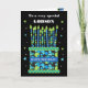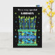 Une carte d'anniversaire brillante pour votre filleul, avec beaucoup de bougies à motifs sur un gâteau d'anniversaire. En haut de la couverture, les mots "À un GODSON très spécial" sont en blanc sur l'arrière - plan noir. Il y a un groupe bleu autour du gâteau avec "HAPPY BANTHDAY !" également en blanc. Les petites étoiles bleues, vertes et blanches sont éparpillées autour de l'arrière - plan noir et le verset intérieur n'est qu'une suggestion, que vous pouvez facilement changer ou supprimer si vous le souhaitez.