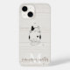 Aimez-vous changer votre couverture iPhone aussi souvent que nous? Découvrez ce minimal beige moderne Monogramme initial Nom iPhone 14 Coque avec un chat de yoga doodle sur un arrière - plan en bois clair. Vous pouvez le personnaliser très facilement avec votre propre nom et monogramme et même votre propre image.