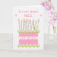 Une très jolie carte d'anniversaire pour votre nièce avec un gâteau d'anniversaire rose avec beaucoup de bougies à motifs. Le gâteau est rose, avec un motif à pois et décoré de grappes de roses Albertines roses, peint à la main dans l'aquarelle. 'Joyeux anniversaire ! ' est écrit en rose assorti sur un bandeau blanc autour du gâteau. Au-dessus des bougies, il dit : "À une NIECE très spéciale avec un petit coeur rose à chaque extrémité du mot, 'NIECE'. Le message intérieur n'est qu'une suggestion et vous pouvez facilement le modifier ou le supprimer, si vous le souhaitez.