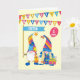 Une carte d'anniversaire amusante pour une soeur que vous pouvez customiser avec son âge. La couverture frontale a deux mignons gnomes, l'un tenant une bannière qui dit "SOEUR" et l'autre tenant un ballon rouge où vous pouvez ajouter l'âge de votre soeur. Les gnomes sont basés sur la "tomte" du folklore scandinave, le mâle avec une longue barbe blanche et la femelle avec d'épaisses tresses blondes, ou tresses. Ils ont tous deux de très grands casquettes qui couvrent leurs yeux ; ils ont de gros nez et ils portent chacun une boîte cadeau ainsi que la bannière et le ballon. 'Joyeux anniversaire' est épelé en lettres blanches sur le bottillon coloré en haut et la couleur arrière - plan est un jaune très pâle et brillant. Le message intérieur n'est qu'une suggestion et vous pouvez facilement le modifier ou le supprimer si vous le souhaitez.