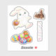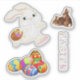 Joli, assortiment de stickers de Pâques, dispose lapin avec panier, deux petits lapins, groupe d'oeufs colorés et le mot Pâques dans un design floral. Idéal pour utiliser ces autocollants taillés sur mesure pour les décorations de Pâques, la réservation de ferraille et plus encore!