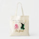 Sac fourre-tout aux couleurs rose et verte avec des motifs inspirés de Glinda et Elphaba de Wicked avec une citation disant "Parce que je vous connaissais, je vous ai changé pour le bien"