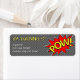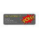 Send out awesome superhero party themed invites with matching superhero themed return address labels! This design features a superhero comic book "POW!" sound effect bubble with the familiar look of a red spiky bubble with black dotted shadows. "POW!" is in a two-tone dotted yellow fill with a slight black shadow to make the word pop.