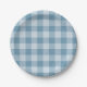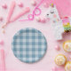 Powder Blue Gingham Buffalo Check Linen Texture Paper Plate