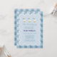 Three bow-tied geese and a nest that's growing — this powder blue gingham baby shower invitation is as charming as the occasion it announces. The classic buffalo check background has the soft, textural quality of woven linen, while the scalloped frame and illustrated geese give it a storybook warmth that feels fresh rather than fussy. Simply customize with the mom-to-be's name, date, time, location, and RSVP details and your invitation is ready to send. A natural fit for baby boy showers, coastal farmhouse celebrations, and anyone who loves a little whimsy done right. Pair with the matching RSVP card, details card, wrapping paper, tissue paper, gift bag, cocktail napkins, and paper plates for a fully coordinated baby shower from the invitation to the gift table.