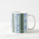 Bring order to your morning ritual with the Striped Floral Mug from The Chinoiserie Archive. This ceramic masterpiece features a rhythmic pattern of vertical teal green and slate stripes, elegantly softened by columns of delicate periwinkle blossoms.