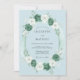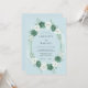 This design features a soft watercolor palette of powder blue, crisp white, and deep seafoam green. A lush arrangement of delicate roses and eucalyptus sprigs creates a romantic and serene aesthetic. Perfect for a classic spring or summer event, the painterly florals offer a timeless and airy feel.