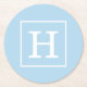 Powder Blue White Framed Initial Monogram Round Paper Coaster