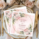 Powder Pink Flowers Greenery with Gold Glitter Wed Napkin