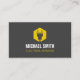A modern, minimalist and professional business card with a logo of a silhouette of a power plug over a hexagon yellow shape. Perfect for electricians and those providing electrical wiring and lighting fixtures installation services. Personalize with your business information in the text templates provided.
