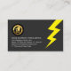 Overleaf, in a grey cover, the yellow lightning powers up your card details ; Over at the top is a gold power gauge logo you can use followed by the business name, contact details and a slogan to advertise your services.