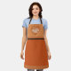 Modern "powered by plants" heart food doodle apron in medium and dark burnt orange colour. Personalize with your name. Perfect as gift for vegan girls.