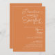 Practice makes perfect! Let's celebrate our favourite couple's rehearsal night before the big day with this elegant fun, playful and simple rehearsal dinner invitation featuring fun script in boho beige and orange terracotta earth tones.