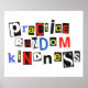 Practice random kindness written in colorful cutout ransom note style letters. Inspire everyone to "pay it forward"