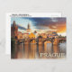 The sunset creates a breathtaking glow across the Vltava River and Charles Bridge on this Prague postcard.