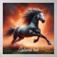 This dramatic illustration shows a grey horse running from a blazing prairie fire.