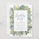 Invitations amis et famille à la fête d'anniversaire en style avec nos incroyables invitations Fête d'anniversaire Wild Meadow. Les invitations à la fête d'anniversaire élégantes comprennent un cadre de feuillage aquarelle dans les tons vert et bleu marine, complété par une police de script fluide. Personnalisez les invitations élégantes à la fête d'anniversaire en ajoutant les détails de votre fête et donnez le ton à votre fête!
