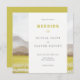 Wedding Invitation with Nature mountain country landscape. Softness Nature landscape spring green prairies in bloom. Silhouettes of brown rocky mountains, grass field and white dandelion flowers. Watercolor painting background Wedding Invitation. Prairies in Bloom Collection.