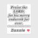 Thank you for buying these "Praise the Lord" stickers with classic black text. These stickers are inspired by the King James Version of 2 Chronicles 20:21, "Praise the LORD; for his mercy endureth for ever."