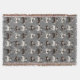 This unique throw blanket has a pattern of black and cream coloured prancing circus horses in a folk art style. The horse pattern is placed on a medium grey background.