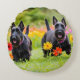 Prancing Scottish Terriers in grass and flowers Round Pillow
