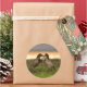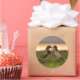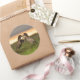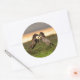 Round photo sticker of two prancing wild Konik horses at sunset in the National Park Oostvaardersplassen in the Netherlands.
