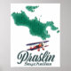 Praslin Seychelles beautiful island map decorated with a classic old red bi-plane.